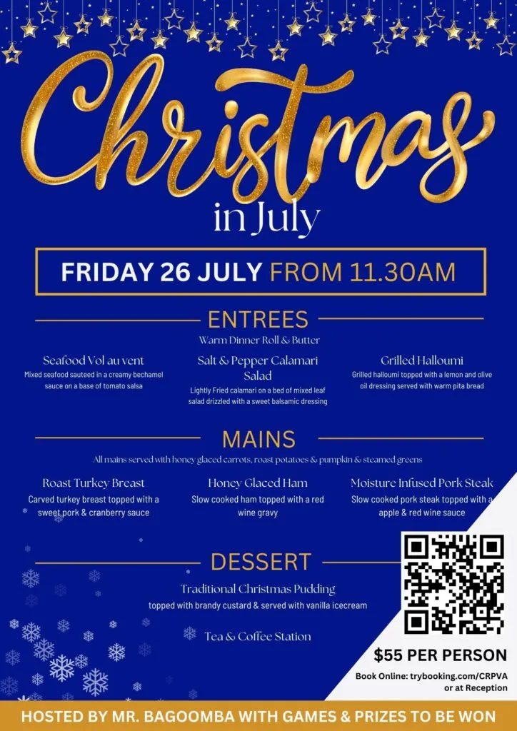 Join us again this year for our Christmas in July 3 course lunch.